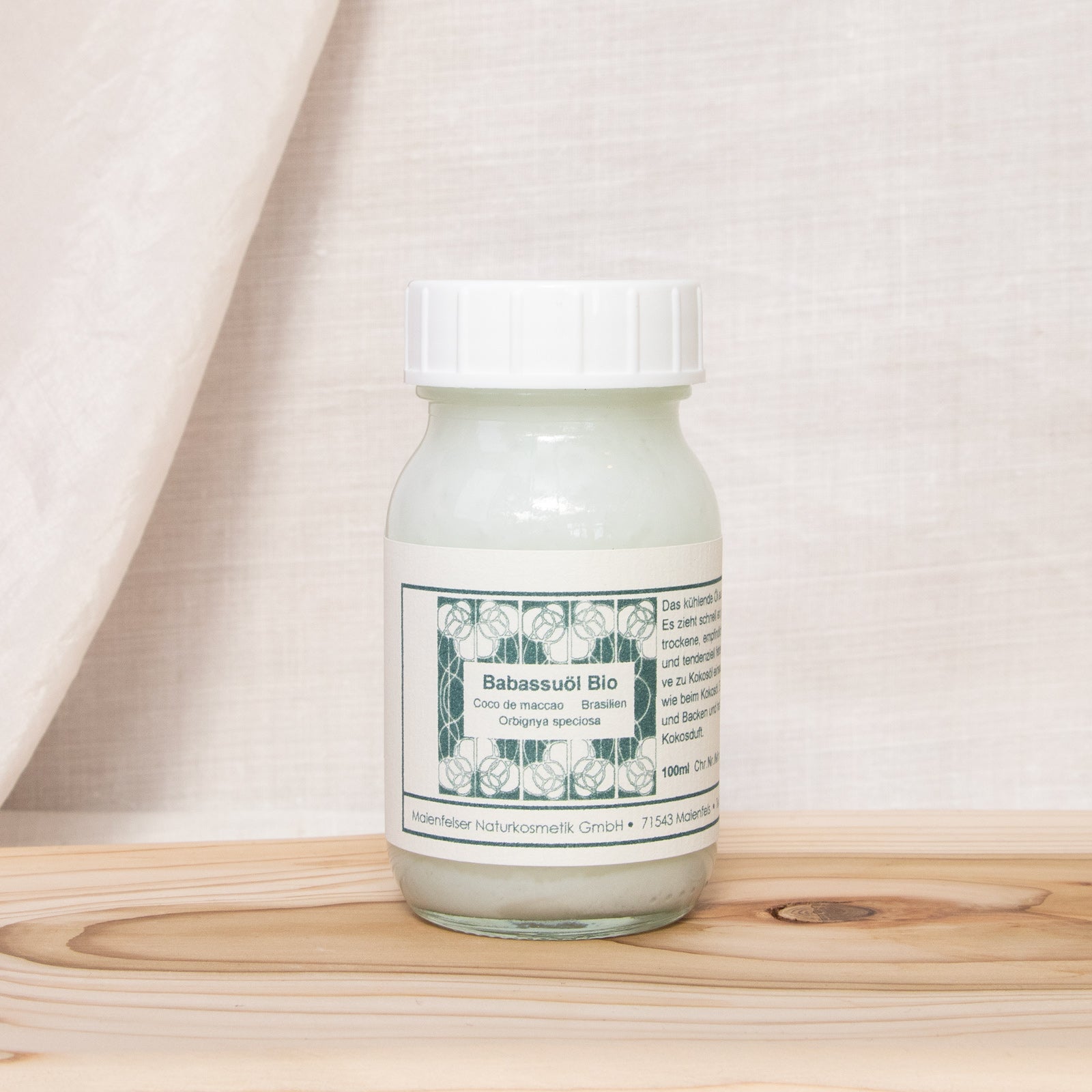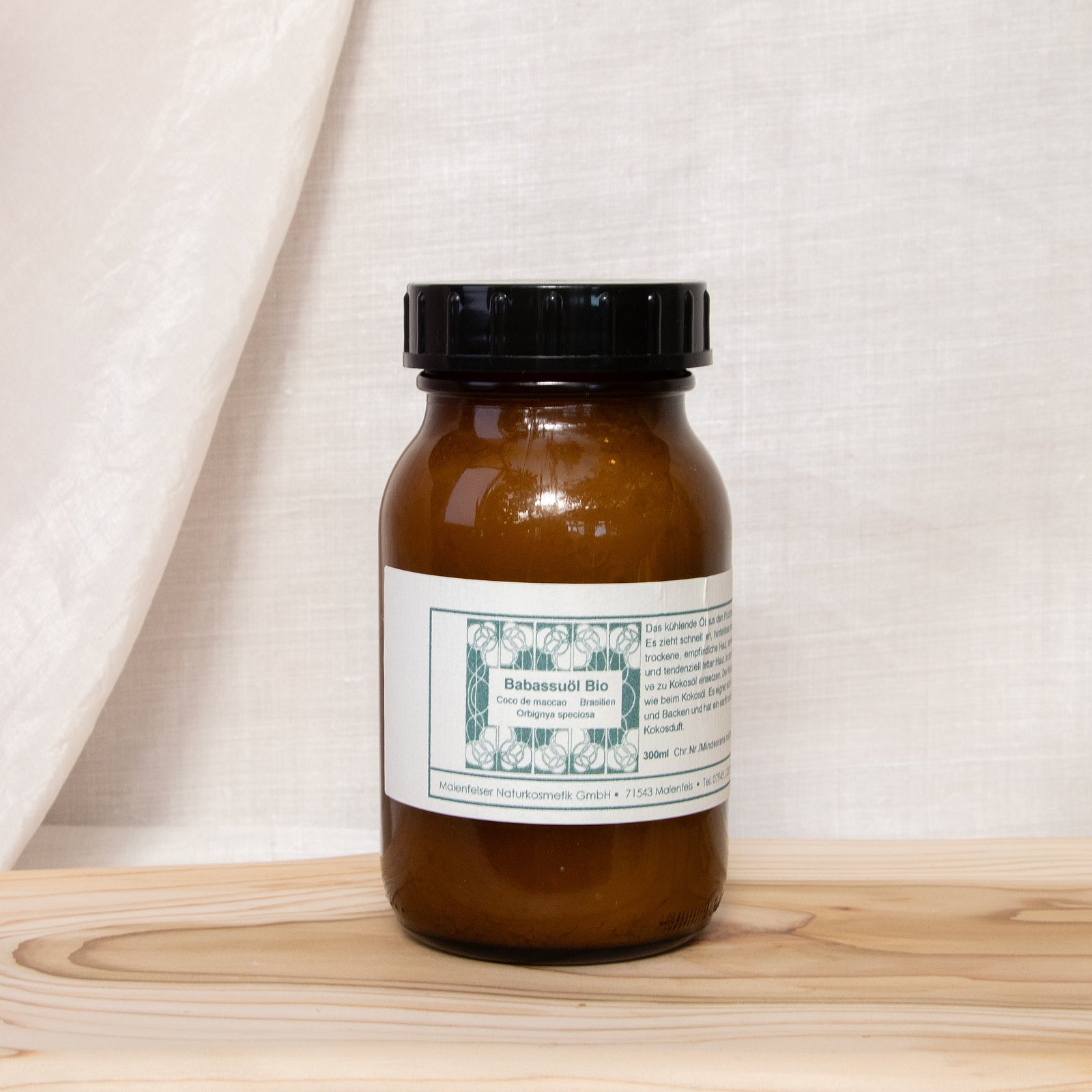 Das Babassuöl stammt von der Babassufrucht der hohen Babassupalme. Sie kommt hauptsächlich aus Brasilien, wo sie in großen Wildbeständen in den Gebieten Malto Grosse, Bahia etc. verbreitet ist. Auf einer Babassupalme können 200 bis 400 Nüsse sein, die in traubenähnlichen Gebilden wachsen. Die Nüsse sind länglich braun und bis 12 cm lang. Das Öl hat eine große Ähnlichkeit mit Cocosöl durch seine gesättigten Fettsäuren und ist bei Zimmertemperatur in einem festen Zustand.