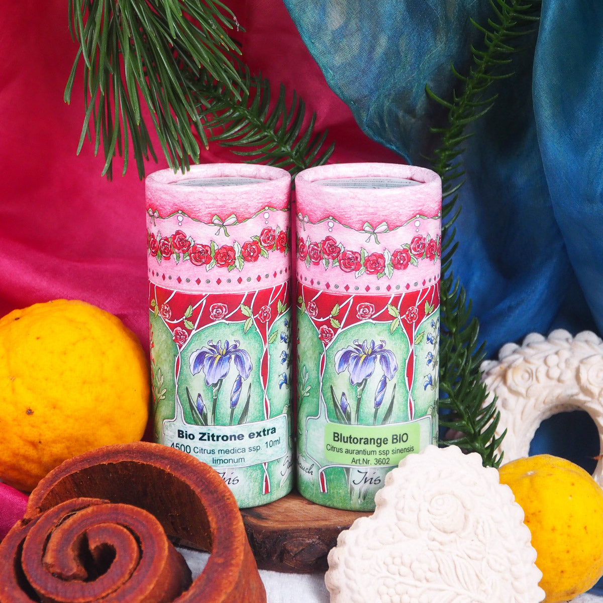 Das Backaromen Set besteht aus Zitrone extra Bio 10ml (Art. 4500) und Blutorange Bio 10ml (Art. 3602)