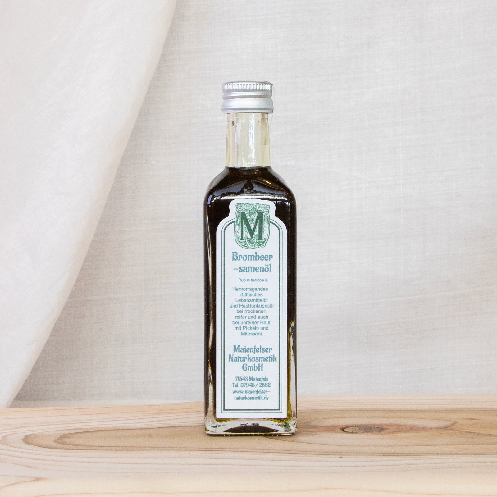 Aus den wunzigen Nüsschen (Samen) in der Brombeere wid in Kaltpressung ein unkelgrünes Öl gewonnen. EInzigartige Kombination von besonderen Fettsäuren und Antioxidantien. Hoher Alpha.-Linolensäuregehalt.