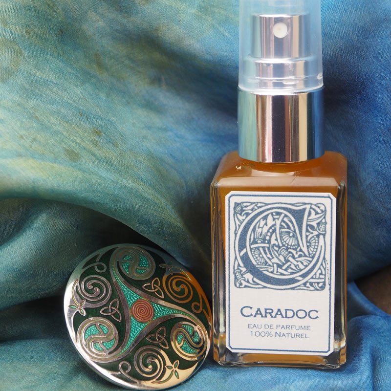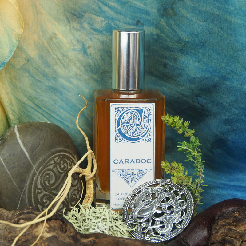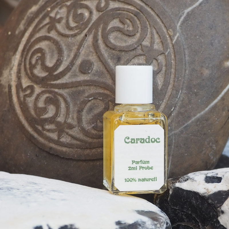Hier bei "Caradoc" sind ausschließlich nur Herz- und Basisnoten vertreten. Das minimiert eine Frische - und leichte Noten die einem hier zuerst um die Nase schweben, gibt es bei diesem Parfüm nicht. Dadurch verstärkt sich auch die Dominanz und das Parfüm ist lang anhaltend und anhaftend. Wir präsentieren in der wichtigen emotionalen Herznote den Schmetterlingsingwer. Kraftvoll, voluminös und zu Herzen gehend betört er schon als Pflanze mit seiner gigantischen phantastischen gelben Blüte. Hier haben wir ein destilliertes Öl aus der Blüte und ein völlig anderes aus dem Rhizom. Beides außergewöhnliche Öle, die jedes Parfüm aufwerten. Dann bereichert der Gaggelstrauch mit seinem extravaganten Duft dieses Bouquet. Mit einer balsamischen tiefen Note bestechen die Moschuswurzel, das Moschusgras und die Nardenwurzel. Alles unter schiedliche Pflanzen, die eines jedoch gemeinsam haben. Verschiedene klangvolle Töne nach Moschus.  Selbstverständlich vegan und natürlich.  Das gigantische Riesengras (Cymbopogon gigantheus) dominiert nicht nur in der Größe im Originalzustand, sondern sendet auch sanfte, weiche Noten im veredelten Öl. Noch erwähnenswert wäre das Öl aus dem Galbanum, eine uralte Duft- und Räucherpflanze, schon vor 2000 Jahren im Gebrauch und auch in der Bibel erwähnt. (Siehe Düfte der Bibel). Weiterhin noch etliche außergewöhnliche und kostbare Öle, die wir aber nicht alle offenlegen wollen. Soll ja auch noch ein Maienfelser Geheimnis sein und bleiben.