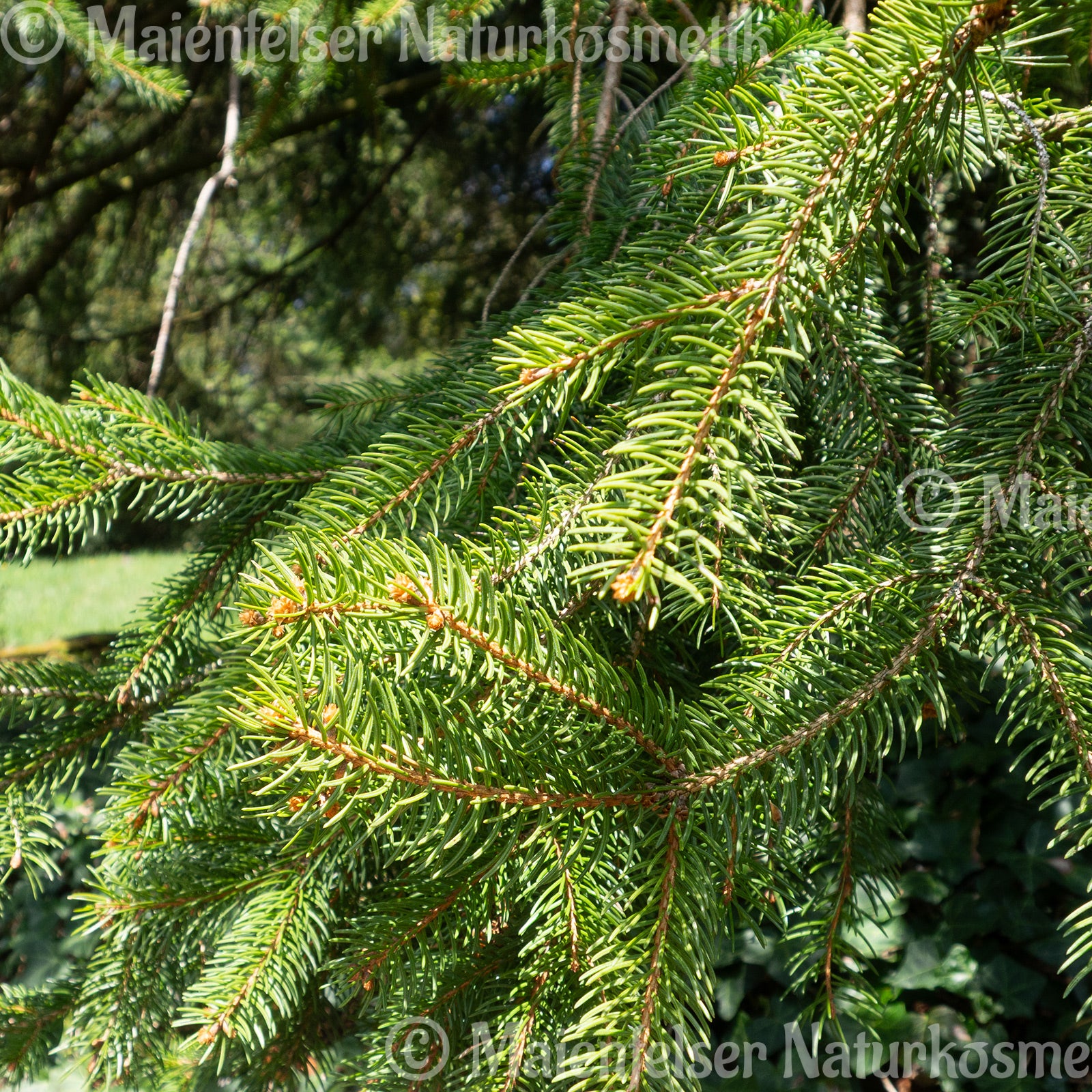 Im Unterschied zu den Tannen haben die Fichten große, nach unten hängende Zapfen. Die auf dem Markt angebotene sibirische Fichte ist meistens eine Tanne.