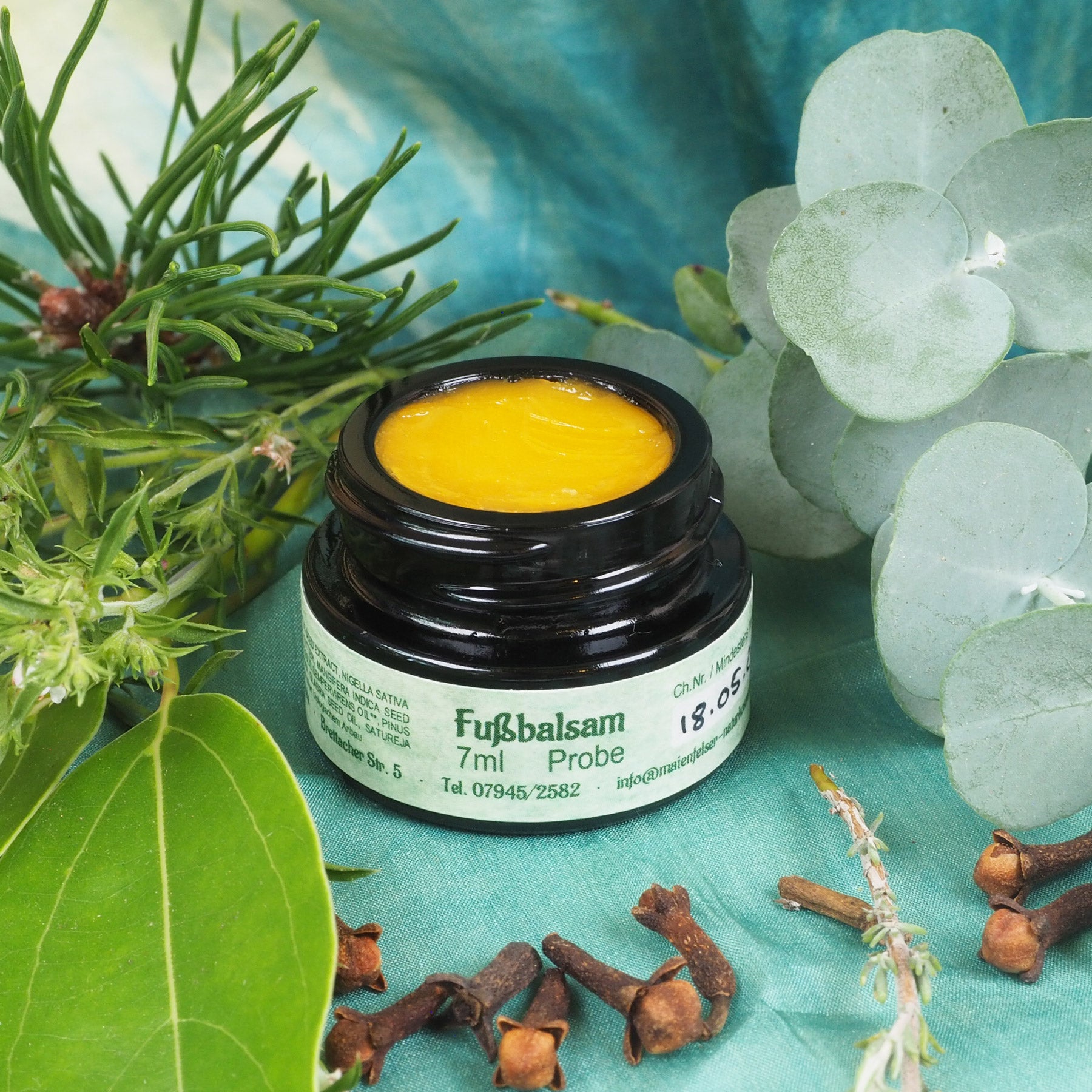 Zu unserer Walking-Fußpflegecreme kommt noch ein natürlicher Fußbalsam dazu. Dieser Fußbalsam ist gedacht für die schrundige, rissige und trockene Haut im ganzen Bereich der Füße. Sie ist eine Fettcreme und wirkt wohltuend mit ihren rein natürlichen Pflanzenölen und der ausgewählten Mischung der ätherischen Öle auf die Füße ein. Antibakterielle, antimikrobielle, antivirale und antifungizide Eigenschaft. Frischer aromatischer Kräuterduft.