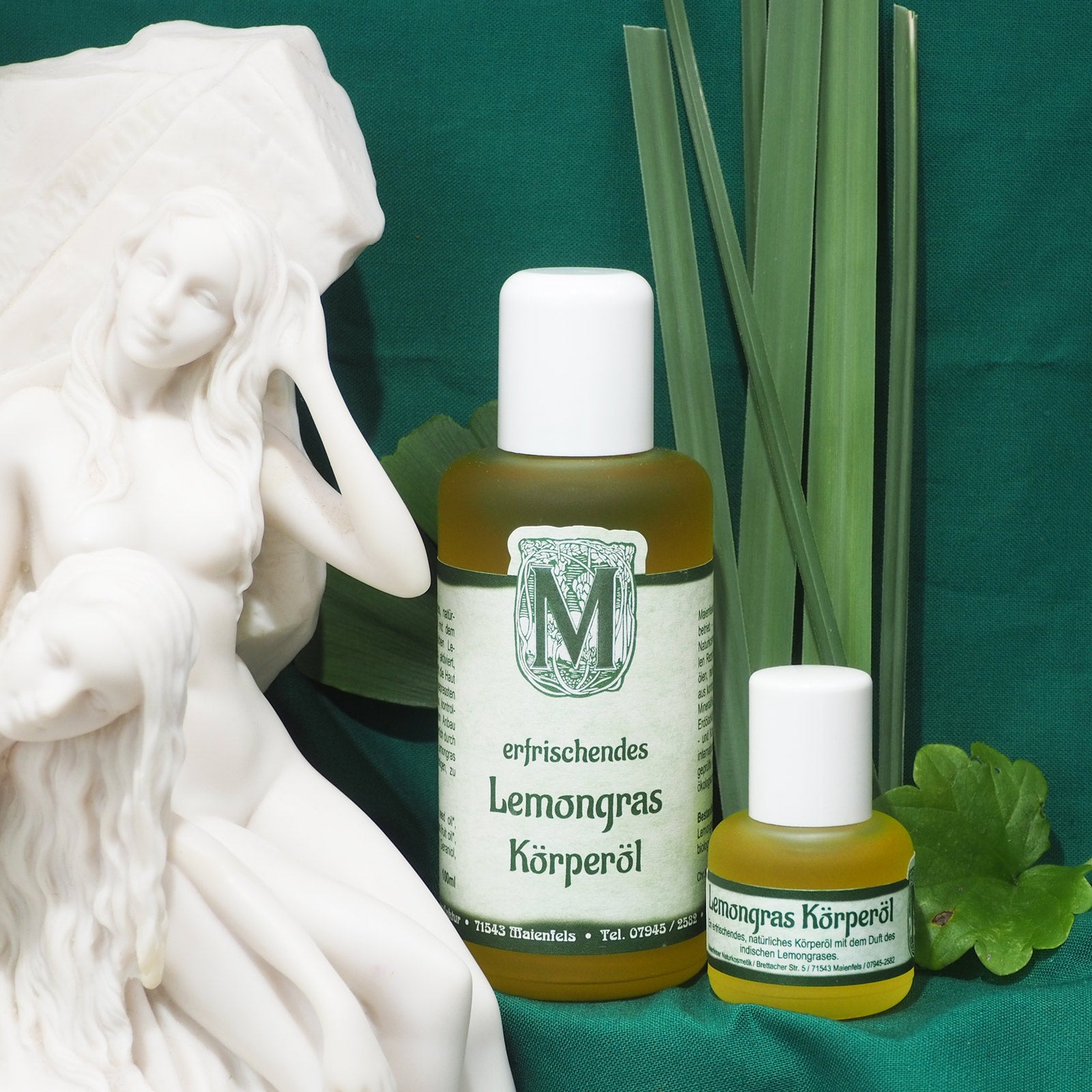 Ein erfrischendes, natürliches Körperöl mit dem Duft des indischen Lemongrases. Es aktiviert, belebt und strafft die Haut durch die kaltgepressten Pflanzenöle aus kontrolliert biologischem Anbau (kbA) und erfrischt herrlich durch sein zitronengrasartiges Duftaroma. Das Lemongras wächst wild in schilfähnlichen Beständen an der Westküste von Südindien, an den Flussläufen in Nepal (Terrai) und riesigen Schilfwäldern im Dschungel des Himalayareiches Bhutan. Obwohl es kaum Unterschiede im Duftaroma gibt, nehmen wir eine ausgewogene Komposition aller drei Sorten