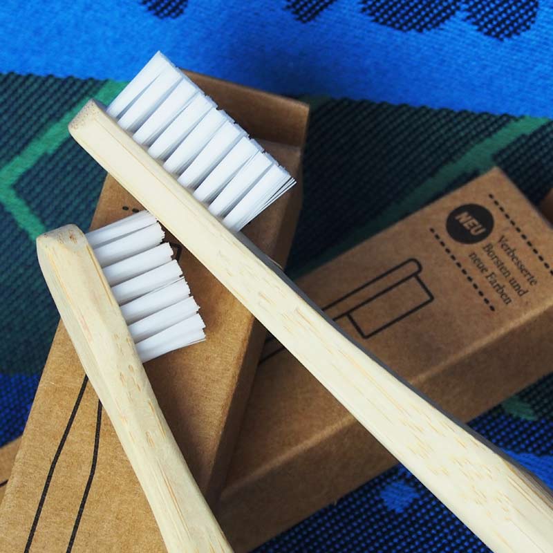 Unsere Nachhaltige Zahnbürste sieht nicht nur besonders gut aus, sondern ist auch eine gute Wahl bei der Verminderung Ihres Plastikmülls. Der Griff besteht aus besonders schnell nachwachsendem Bambus, die gefärbten Griffe aus zertifiziert biologisch Abbaubarer Farbe. Auch die Erdölfreien Borsten sind pflanzenbasiert. Sie werden aus Rizinusöl gefertigt