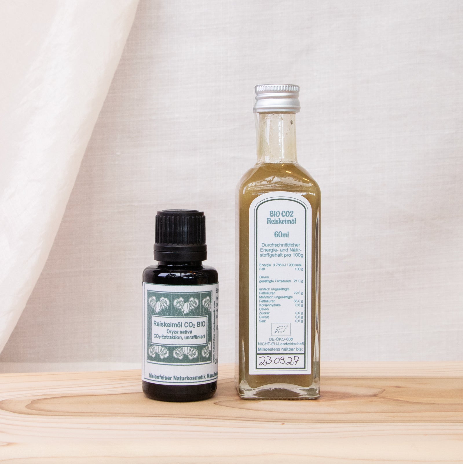 Hier können wir Ihnen unsere 2. Variante des Reiskeimöls anbieten. Hergestellt in schonender CO2-Extraktion, bei der noch alle Inhaltsstoffe im vollen Maße erhalten sind. Außerdem aus kontrolliert biologischen Anbau. Mit hohem Anteil an Y-Oryzanol. Dieses Öl ist aber nicht immer erhältlich und vom Preis her leider wesentlich teurer.