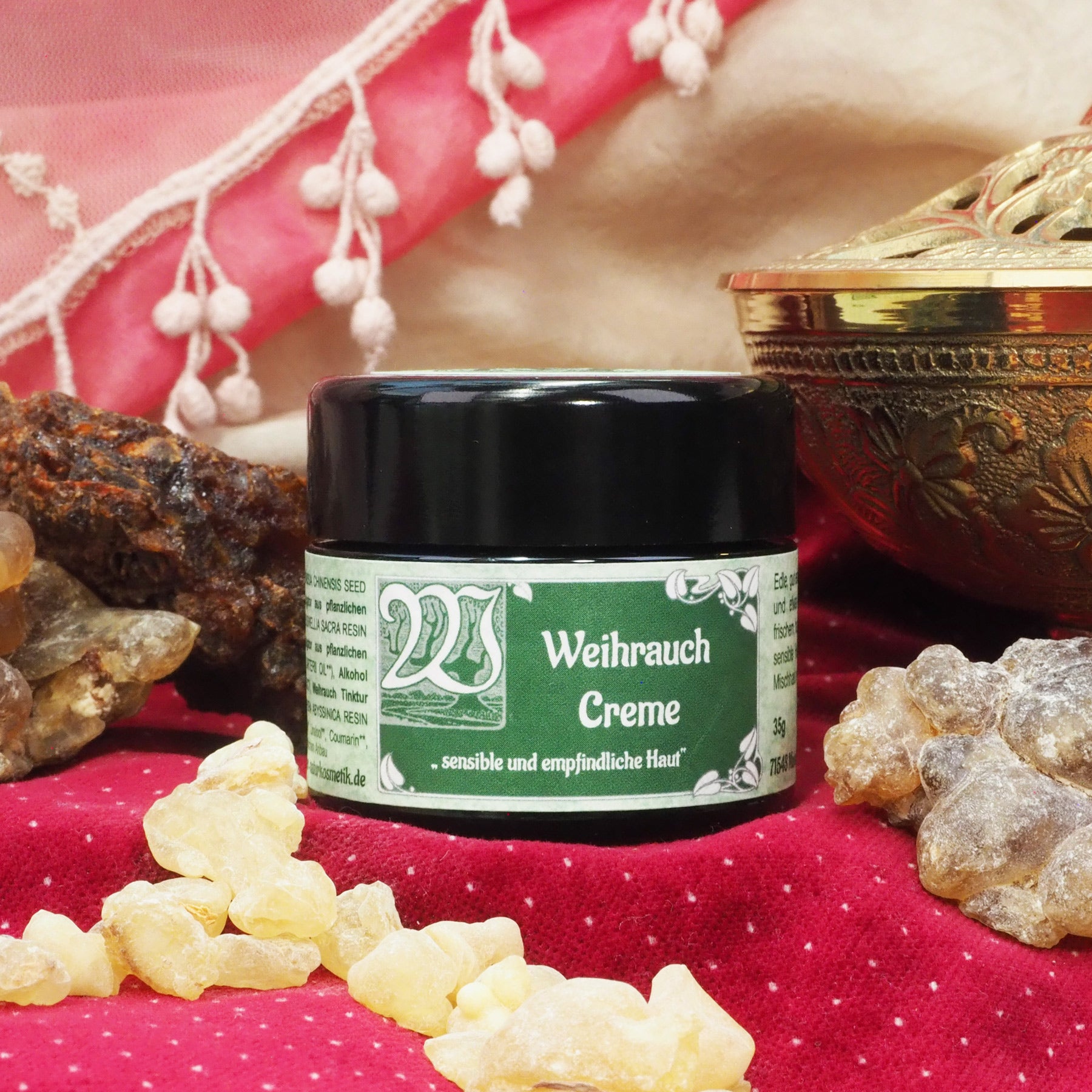 Edle Feuchtigkeitscreme mit viel Weihrauch und etwas Myrrhe bei sensibler , empfindlicher Haut. Zieht gut ein und klebt nicht.